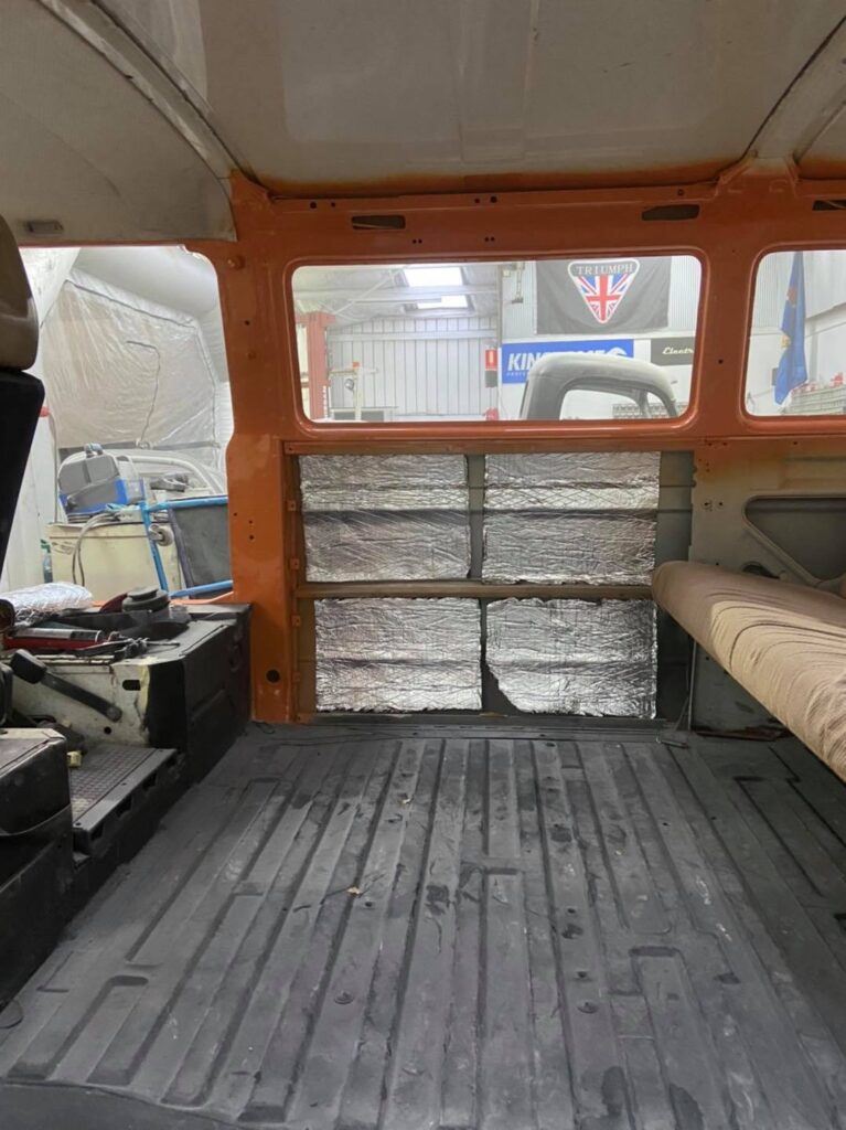 The next step was the interior. Fitting it out with a brand new off white interior kit from the US, new timber floors were fitted to match, seat covers were made also to match and a rock and roll bed fitted in the back for those nights at the drive in or a trip away with the family camping.