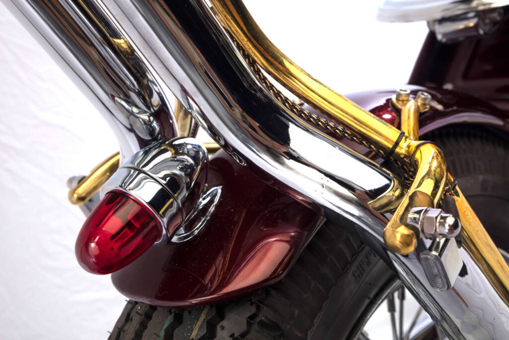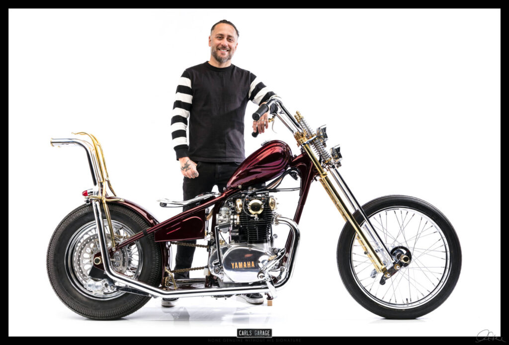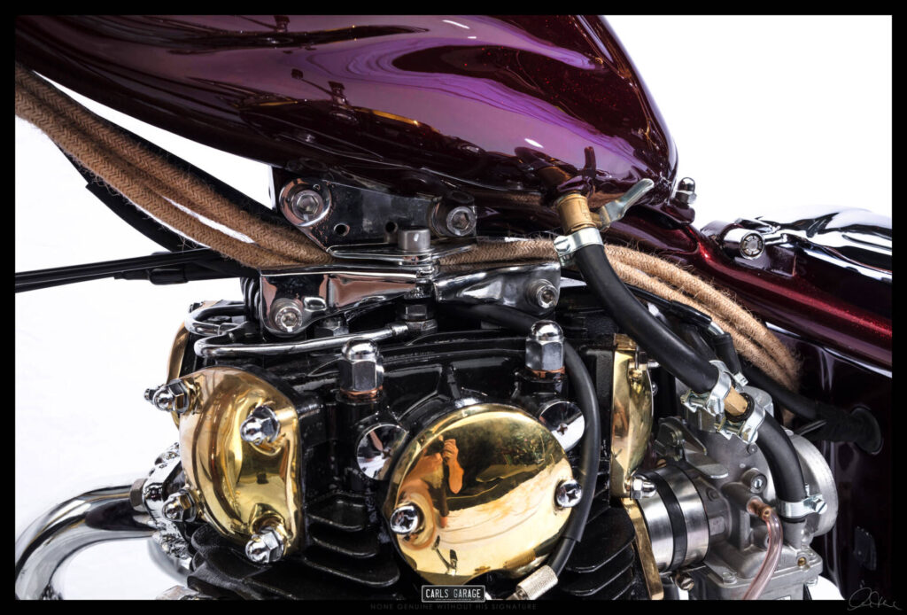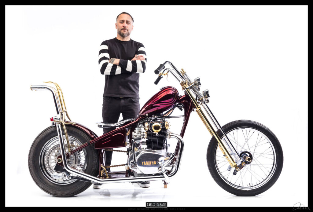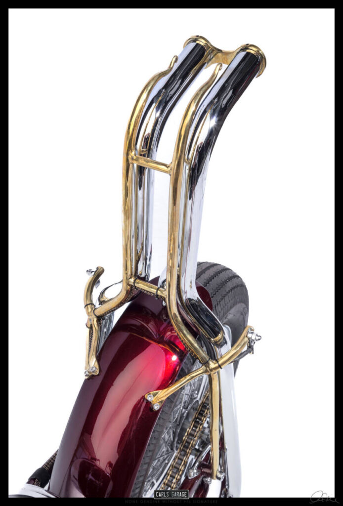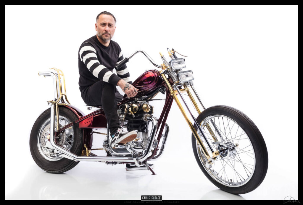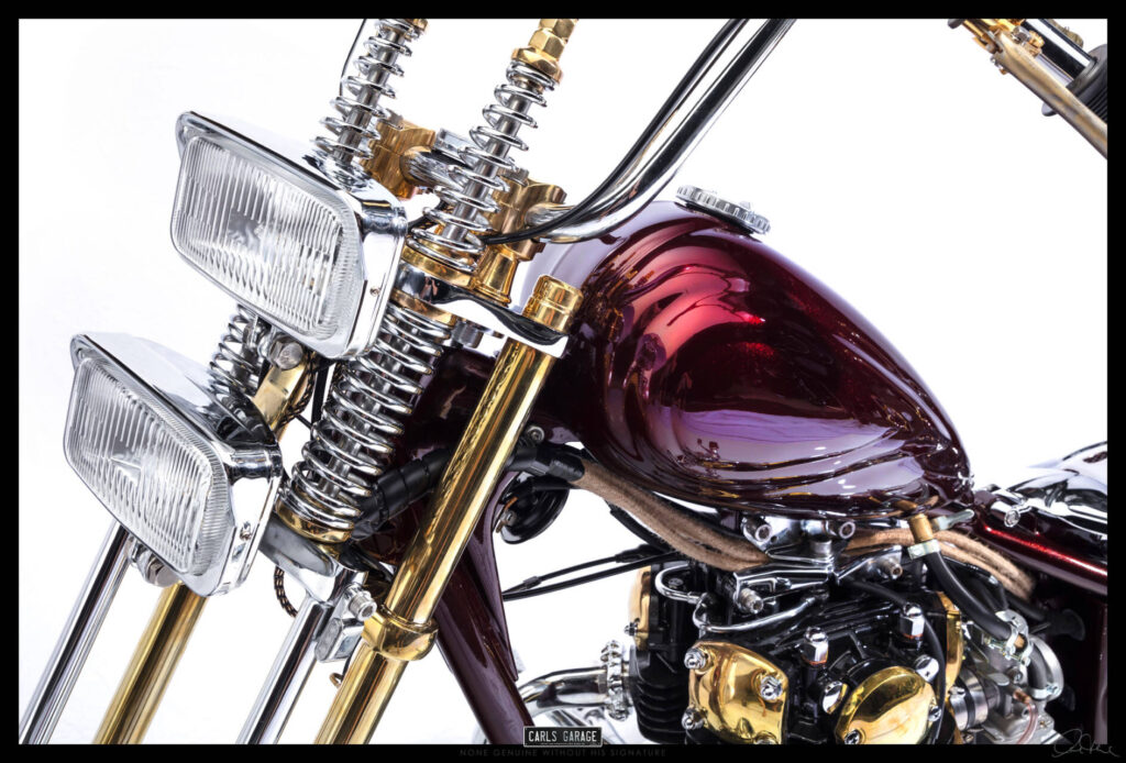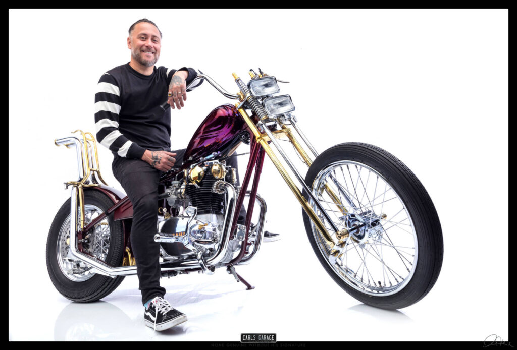 He first asked me if I could fit the electronic ignition and wire it up. After doing so on day one Rodney turned up to see the job and asked me what would you do if you were to custom build this bike. I replied, it all depends on budget, but if you are willing to spend what ever is needed and let me have creative freedom I’ll build you an award winning one off show bike chopper. He loved the idea and the rest is history.